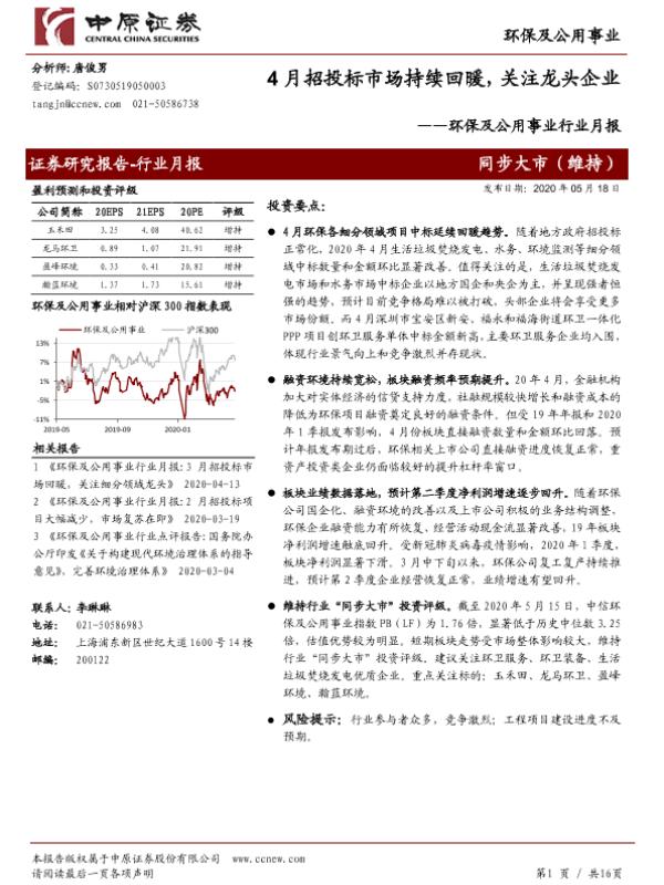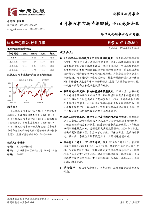 【中原证券】【20200518】4月招投标市场持续回暖,关注龙头企业-16页