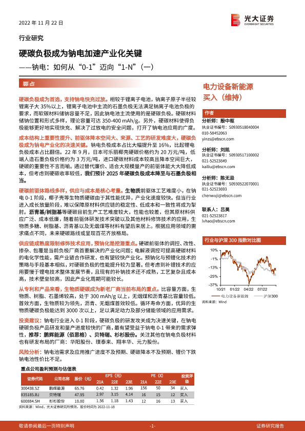 【光大证券】【20221122】电力设备新能源行业钠电:如何从“0_1”迈向“1_N”(一),硬碳负极成为钠电加速产业化关键-33页
