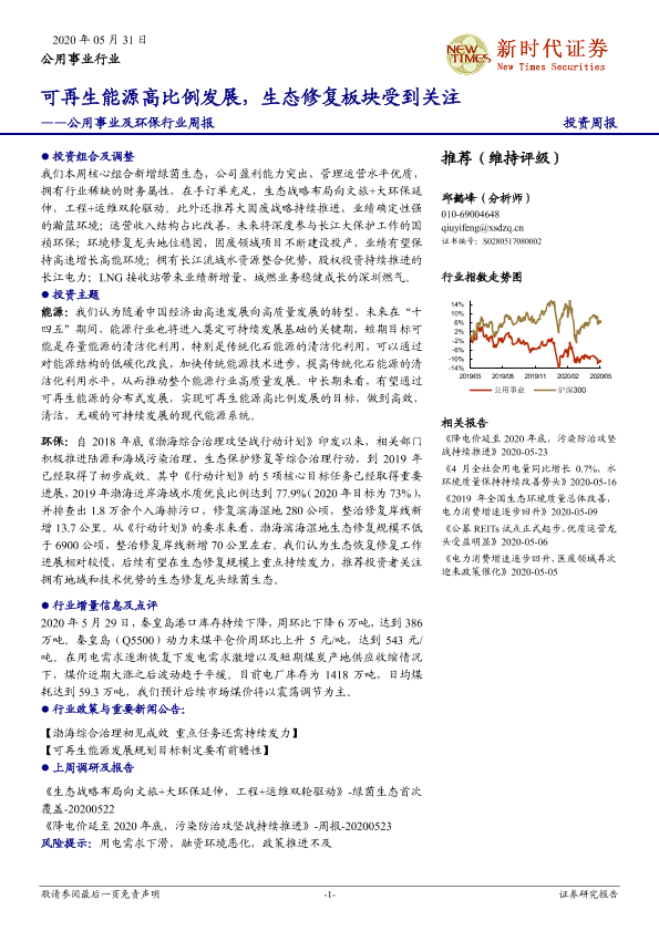 【新时代证券】【20200531】新时代证券-公用事业及环保行业周报:可再生能源高比例发展,生态修复板块受到关注-19页