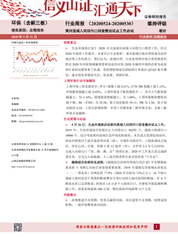 【山西证券】【20200531】环保(含新三板)行业周报:黄河流域入河排污口排查整治试点工作启动-11页