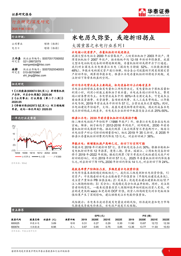 【华泰证券】【20200603】大国重器之水电行业系列I:水电历久弥坚,或迎折旧拐点-15页