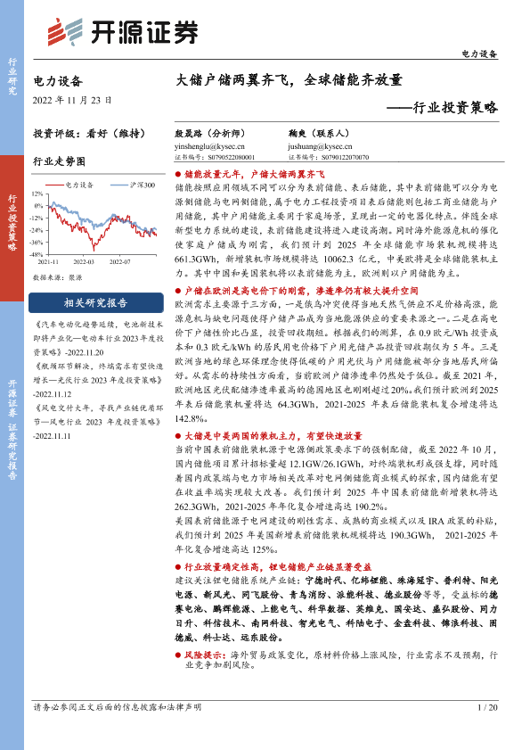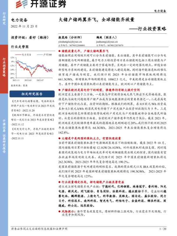 【开源证券】【20221123】电力设备行业投资策略:大储户储两翼齐飞,全球储能齐放量-20页