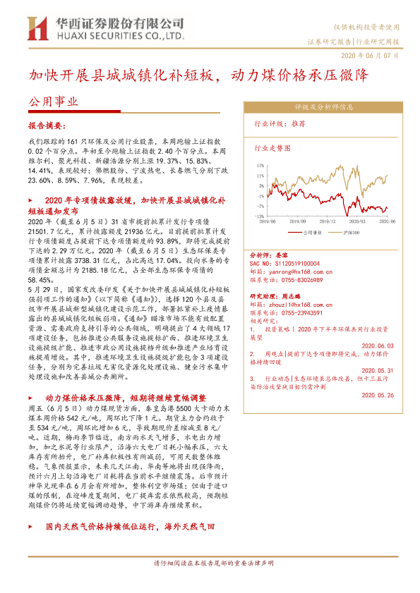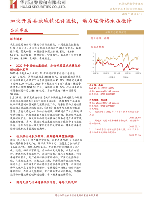 【华西证券】【20200607】加快开展县城城镇化补短板,动力煤价格承压微降-14页