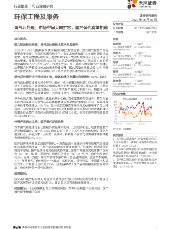 【天风证券】【20200607】尾气后处理:市场空间大幅扩容,国产替代有望加速-31页