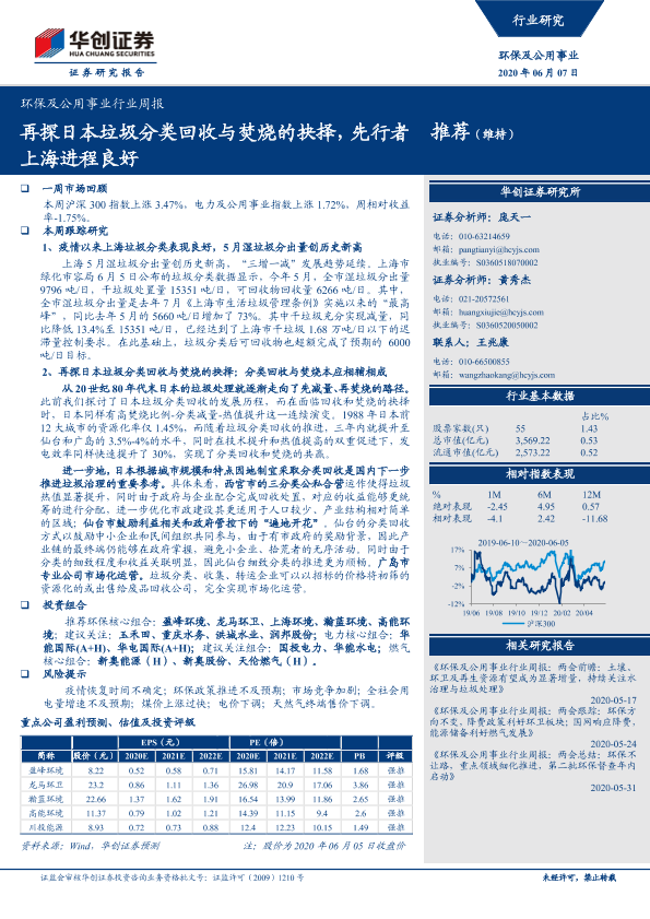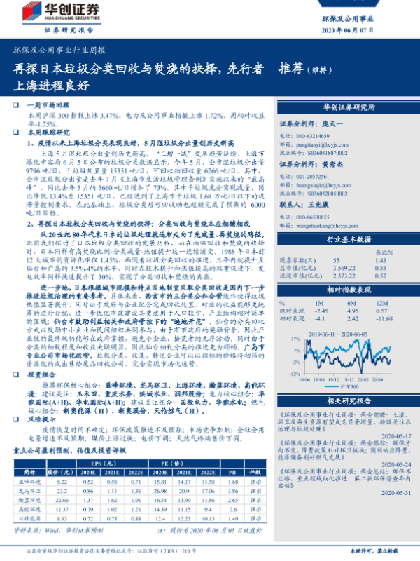 【华创证券】【20200607】环保及公用事业行业周报:再探日本垃圾分类回收与焚烧的抉择,先行者上海进程良好-28页