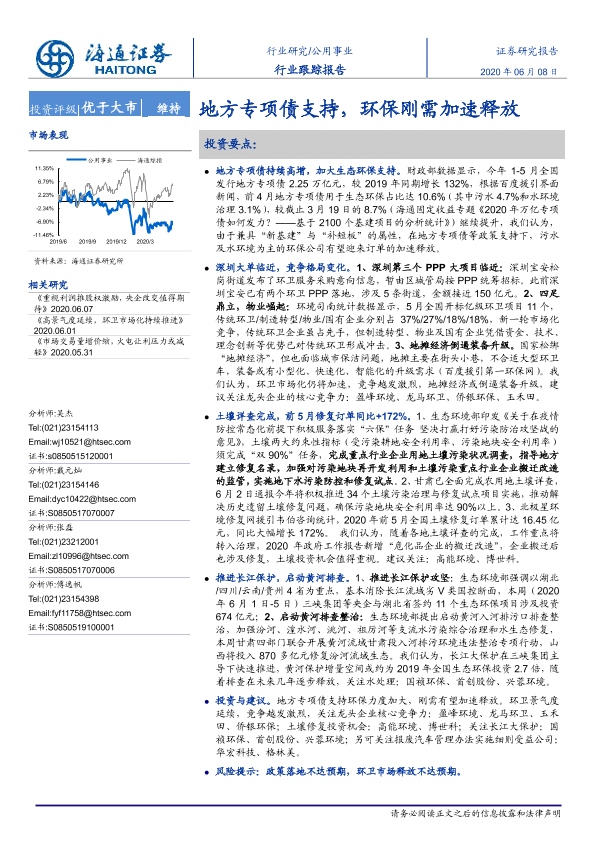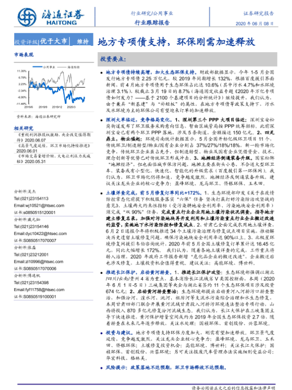 【海通证券】【20200608】公用事业行业跟踪报告:地方专项债支持,环保刚需加速释放-2页