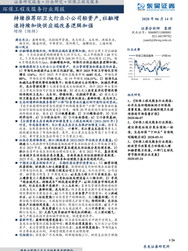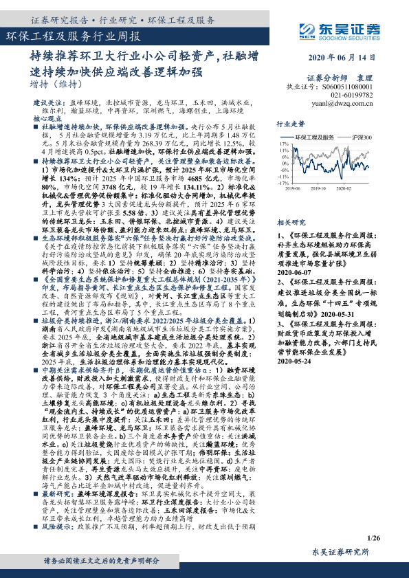 【东吴证券】【20200614】环保工程及服务行业周报:持续推荐环卫大行业小公司轻资产-26页
