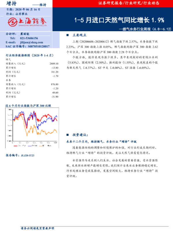 【上海证券】【20200616】1-5月进口天然气同比增长1.9%-6页