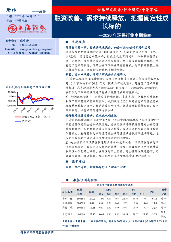 【上海证券】【20200617】2020年环保行业中期策略-31页