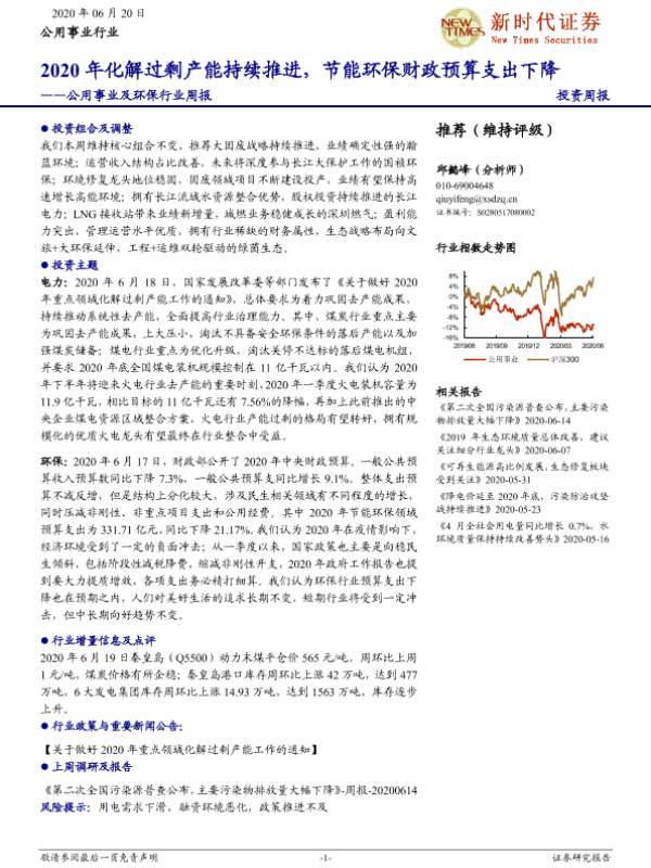 【新时代证券】【20200620】2020年化解过剩产能持续推进,节能环保财政预算支出下降-18页