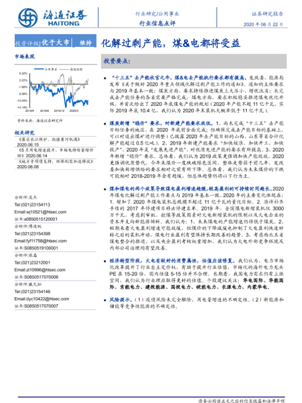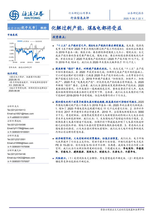 【海通证券】【20200622】公用事业行业信息点评:化解过剩产能,煤&电都将受益-2页