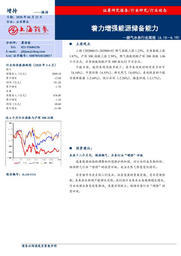 【上海证券】【20200622】燃气水务行业周报:着力增强能源储备能力-6页