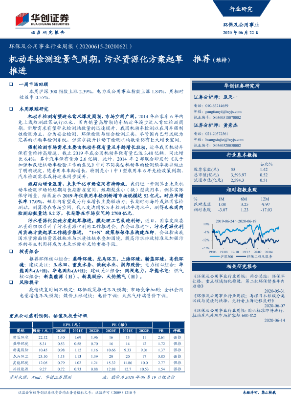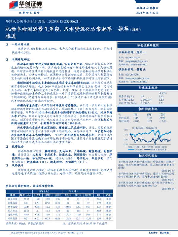 【华创证券】【20200622】环保及公用事业行业周报:机动车检测迎景气周期,污水资源化方案起草推进-30页