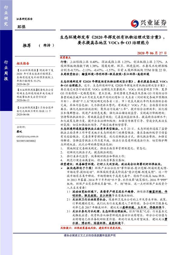 【兴业证券】【20200627】2020年挥发性有机物治理攻坚方案发布,要求提高各地区VOCs和O3治理能力-8页