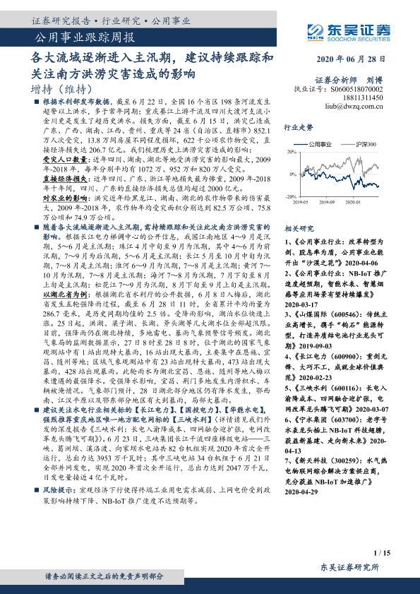 【东吴证券】【20200628】公用事业跟踪周报:各大流域逐渐进入主汛期,建议持续跟踪和关注南方洪涝灾害造成的影响-15页