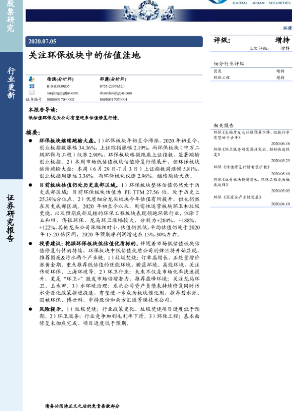 【国泰君安证券】【20200705】关注环保板块中的估值洼地-6页