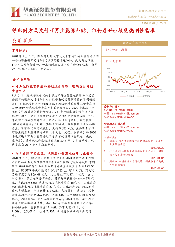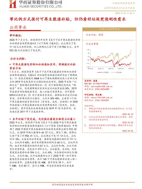 【华西证券】【20200705】等比例方式拨付可再生能源补贴,但仍看好垃圾焚烧刚性需求-5页