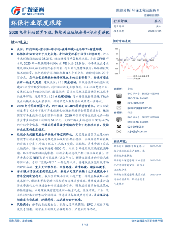 【广发证券】【20200705】2020电价补助预算下达,持续关注垃圾分类+污水资源化-12页