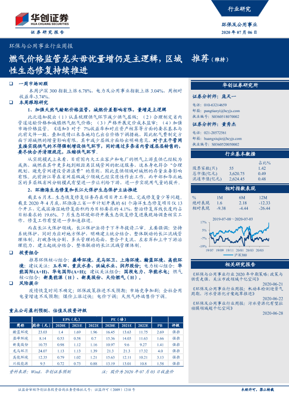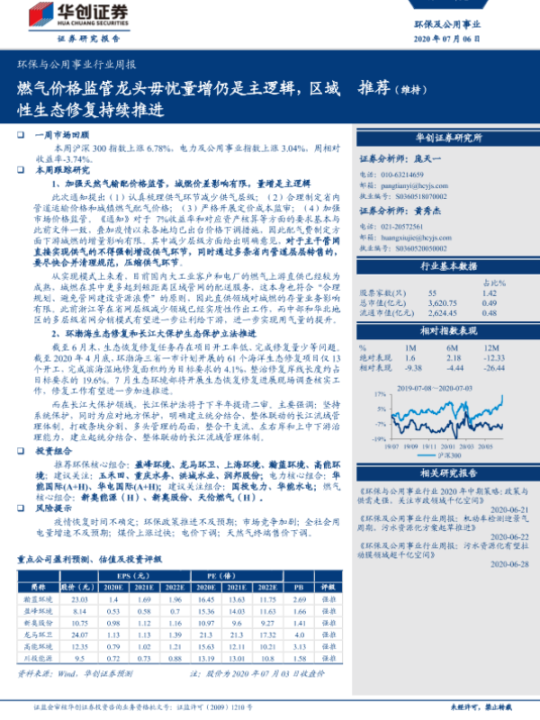 【华创证券】【20200706】环保与公用事业行业周报:燃气价格监管龙头毋忧量增仍是主逻辑,区域性生态修复持续推进-30页