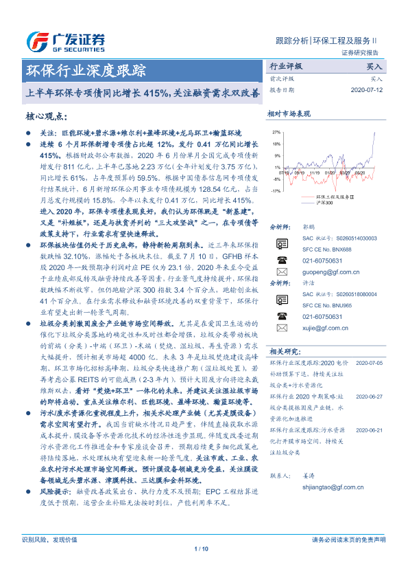 【广发证券】【20200712】上半年环保专项债同比增长415%,关注融资需求双改善-10页