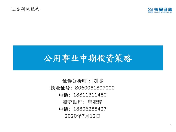 【东吴证券】【20200712】公用事业中期投资策略-36页