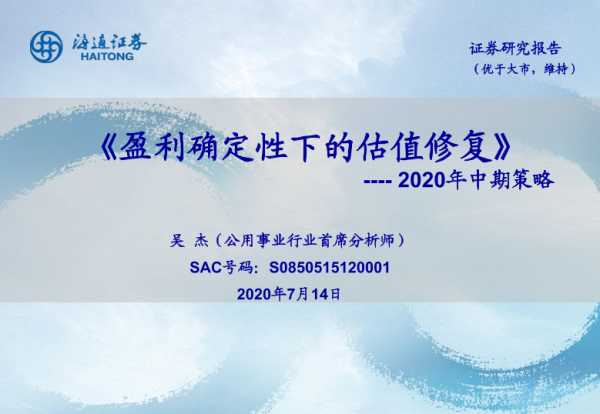 【海通证券】【20200714】盈利确定性下的估值修复-26页