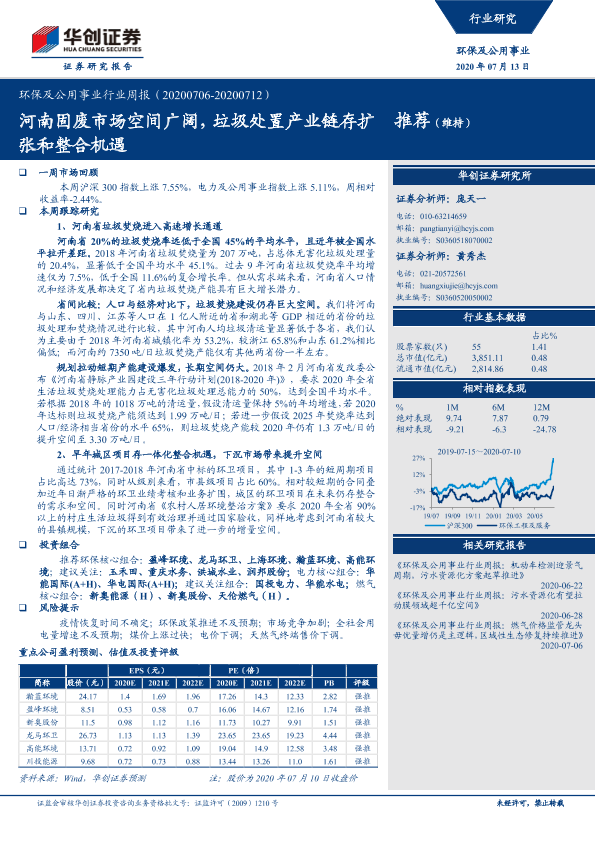 【华创证券】【20200713】环保与公用事业行业周报:河南固废市场空间广阔,垃圾处置产业链存扩张和整合机遇-29页