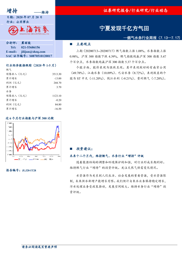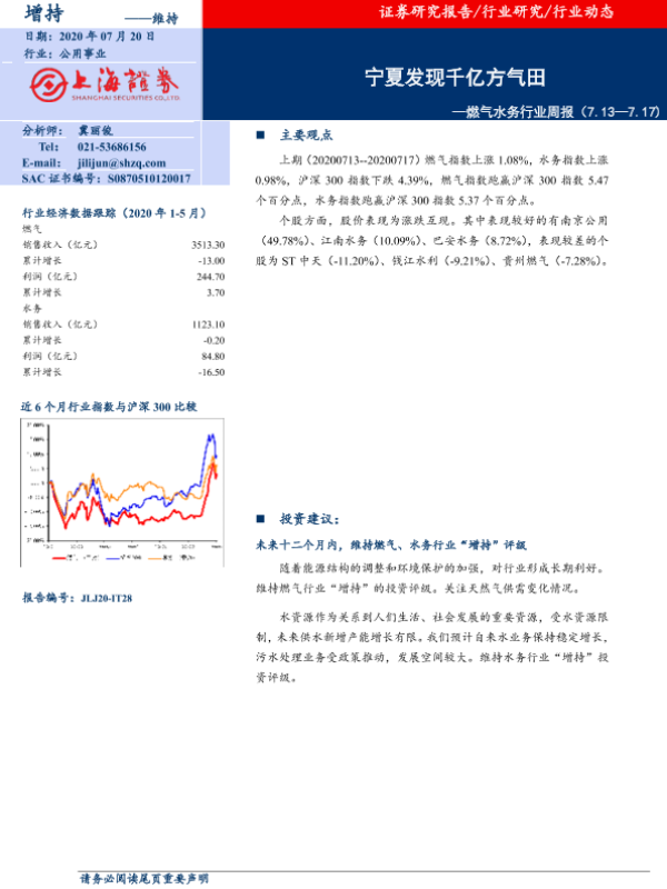 【上海证券】【20200720】燃气水务行业周报:宁夏发现千亿方气田-7页
