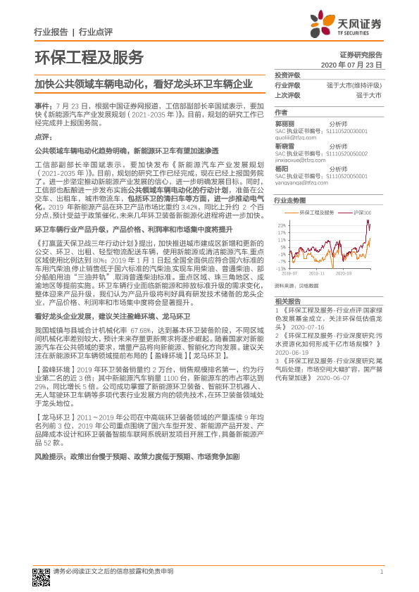 【天风证券】【20200723】加快公共领域车辆电动化,看好龙头环卫车辆企业-2页