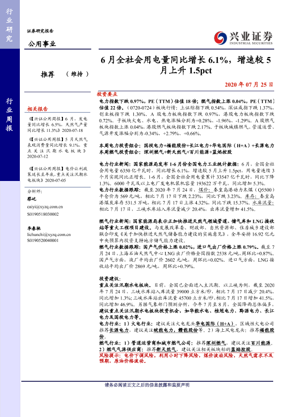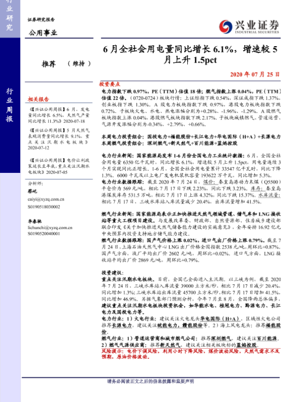 【兴业证券】【20200725】6月全社会用电量同比增长6.1%,增速较5月上升1.5pct-14页