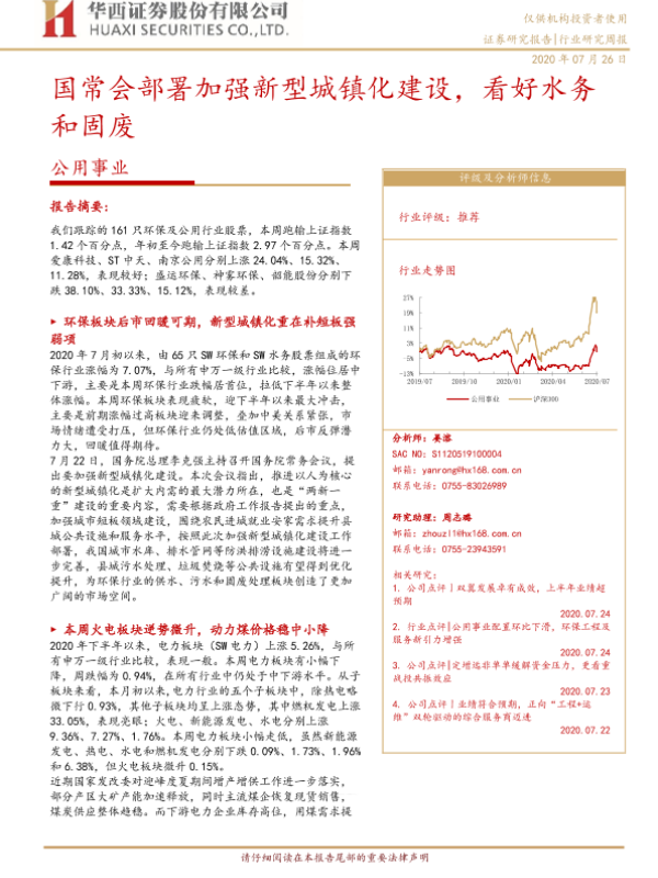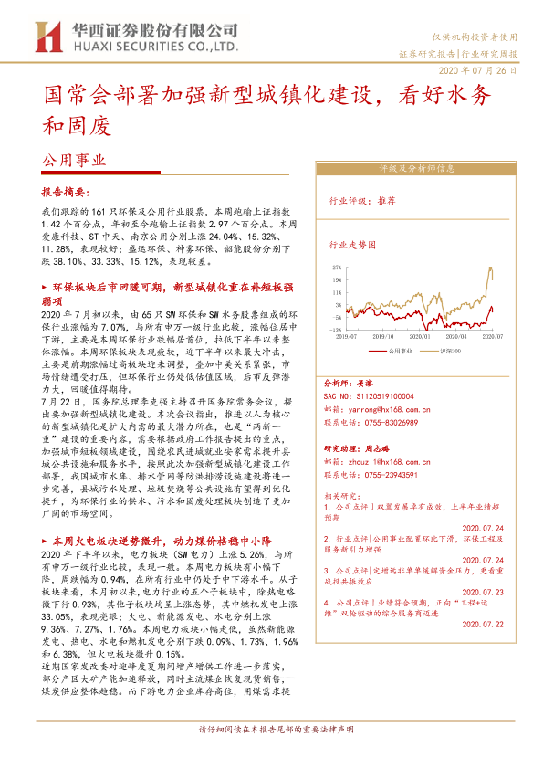 【华西证券】【20200726】公用事业行业研究周报:国常会部署加强新型城镇化建设,看好水务和固废-16页