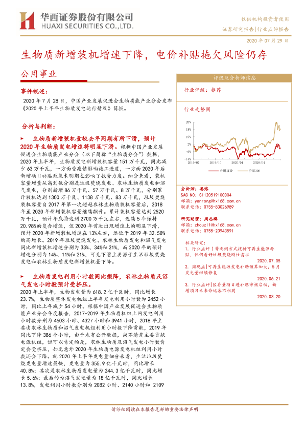 【华西证券】【20200729】生物质新增装机增速下降,电价补贴拖欠风险仍存-4页
