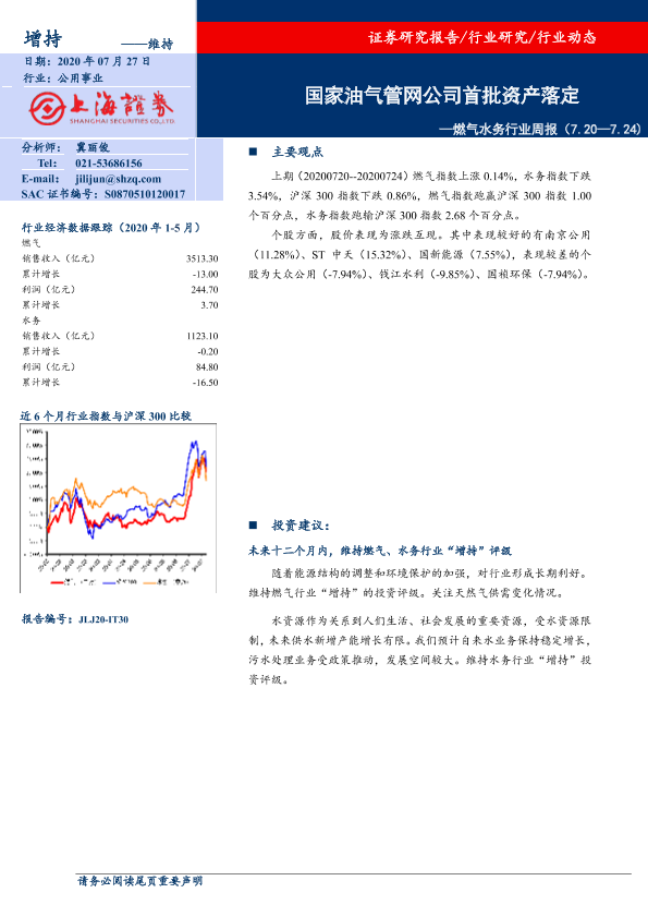 【上海证券】【20200727】燃气水务行业周报:国家油气管网公司首批资产落定-6页
