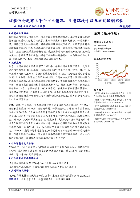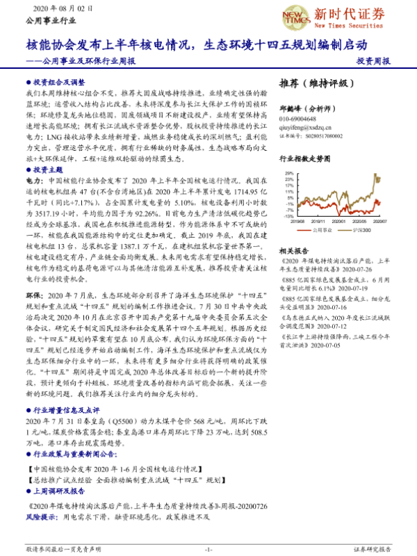 【新时代证券】【20200802】新时代证券公用事业及环保行业周报-18页