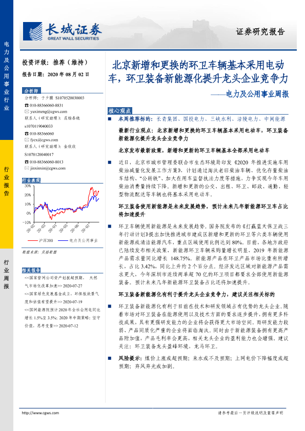【长城证券】【20200802】北京新增和更换的环卫车辆基本采用电动车,环卫装备新能源化提升龙头企业竞争力-11页