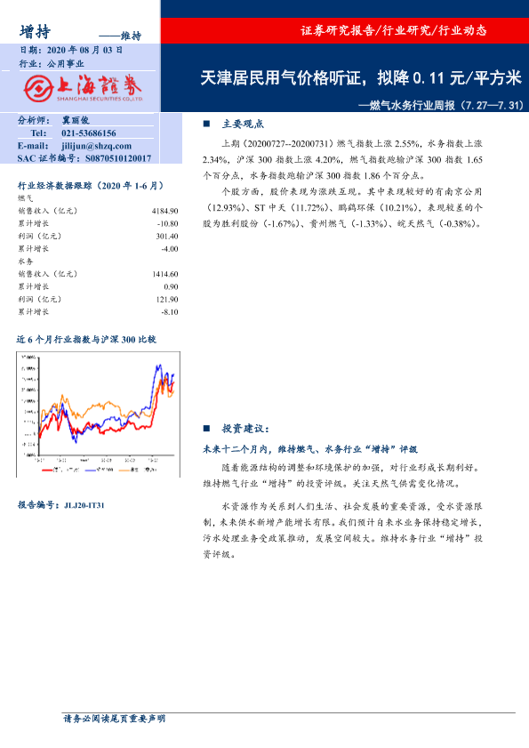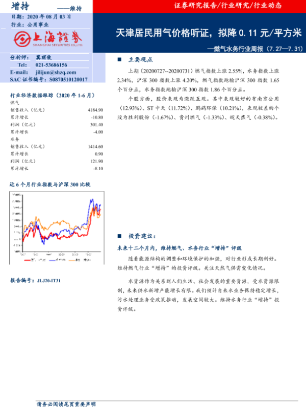 【上海证券】【20200803】燃气水务行业周报:天津居民用气价格听证,拟降0.11元/平方米-7页