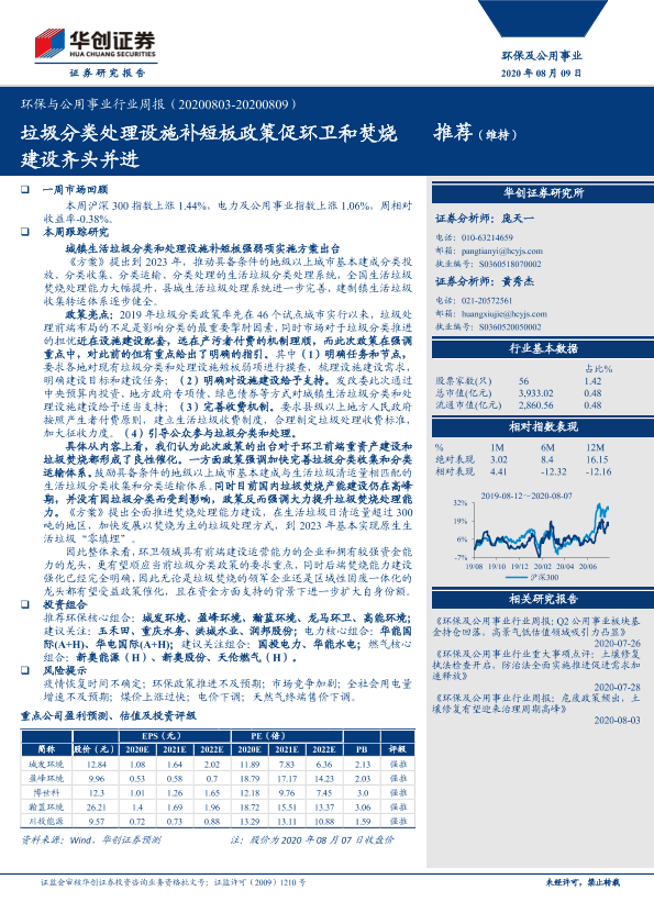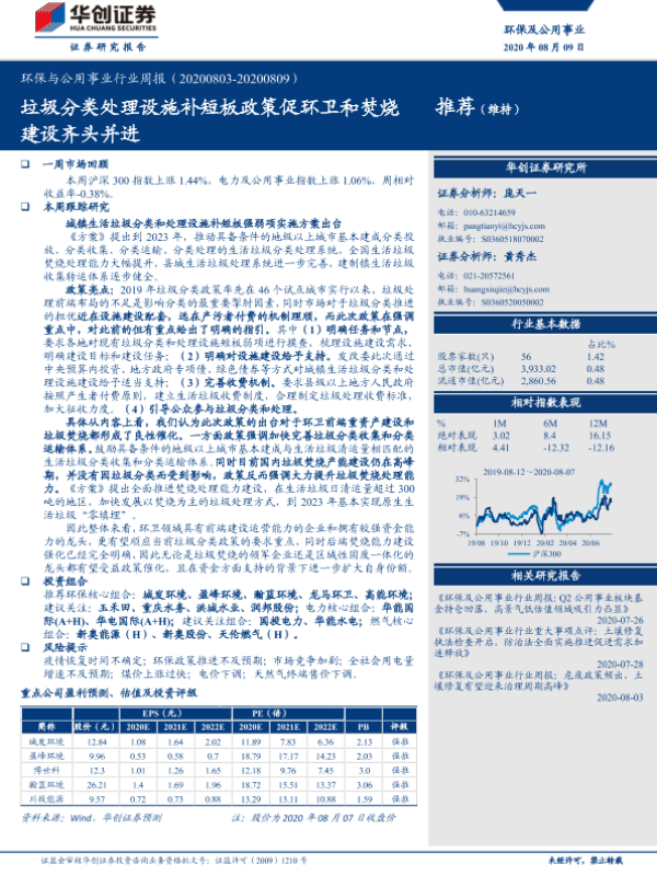 【华创证券】【20200809】环保与公用事业行业周报:垃圾分类处理设施补短板政策促环卫和焚烧建设齐头并进-23页