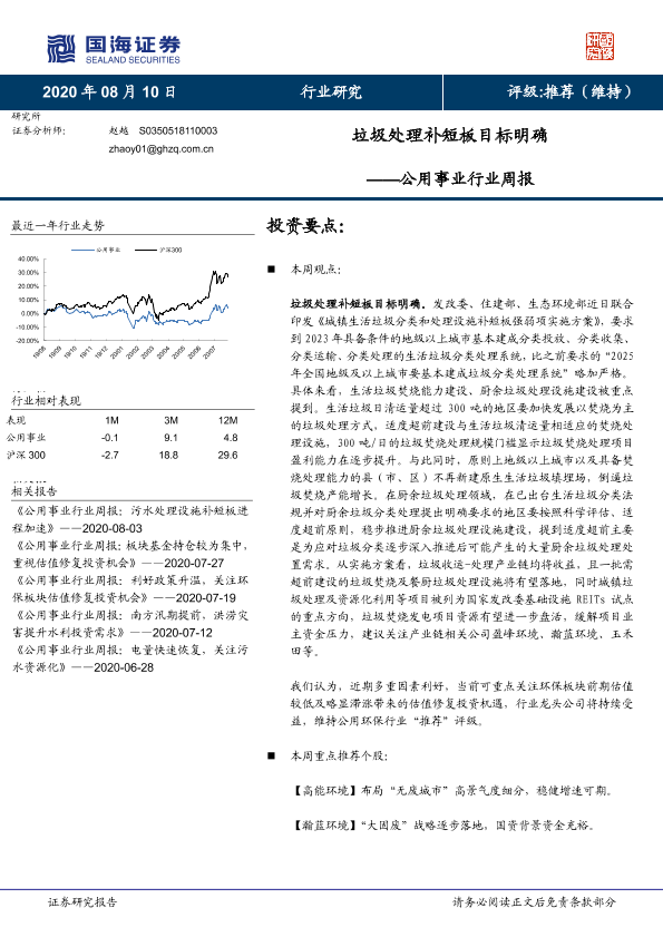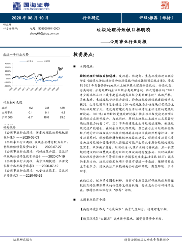 【国海证券】【20200810】垃圾处理补短板目标明确-10页