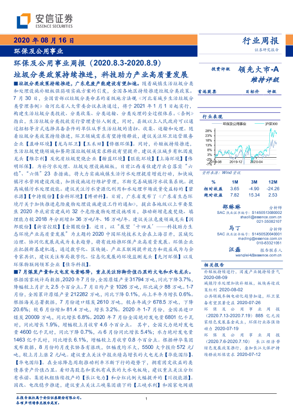 【安信证券】【20200816】环保及公用事业周报:垃圾分类政策持续推进,科技助力产业高质量发展-17页