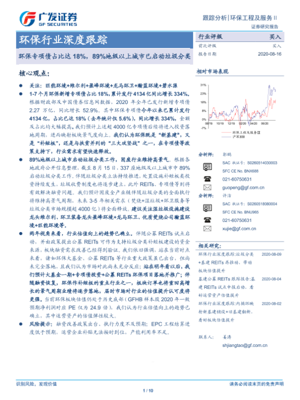 【广发证券】【20200816】环保专项债占比达18%,89%地级以上城市已启动垃圾分类-10页