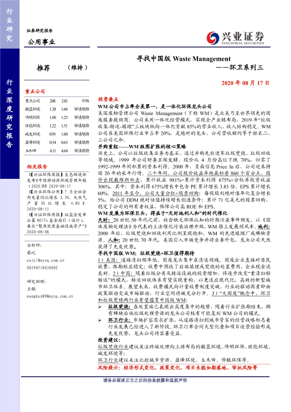 【兴业证券】【20200817】寻找中国版 Waste Management-22页