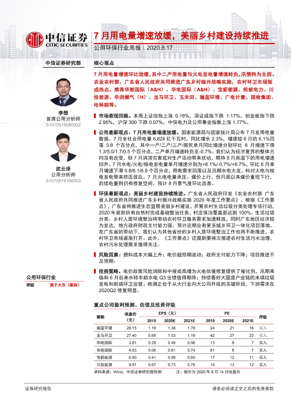 【中信证券】【20200817】7月用电量增速放缓,美丽乡村建设持续推进-12页