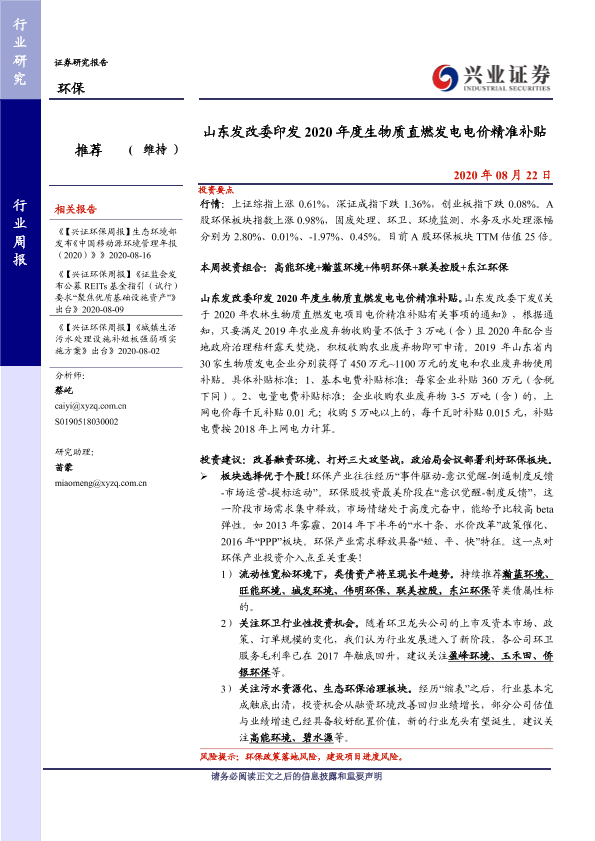 【兴业证券】【20200822】2020年度生物质直燃发电电价精准补贴-8页