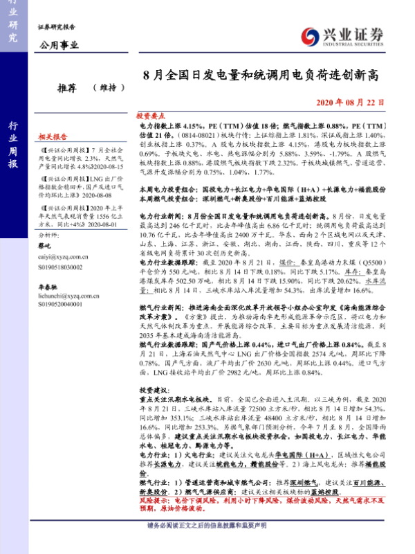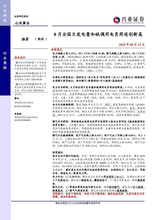 【兴业证券】【20200822】8月全国日发电量和统调用电负荷连创新高-13页