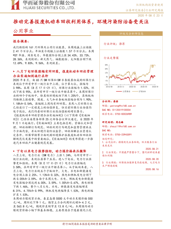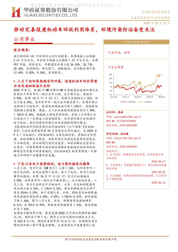 【华西证券】【20200823】公用事业行业研究周报:推动完善报废机动车回收利用体系,环境污染防治备受关注-19页