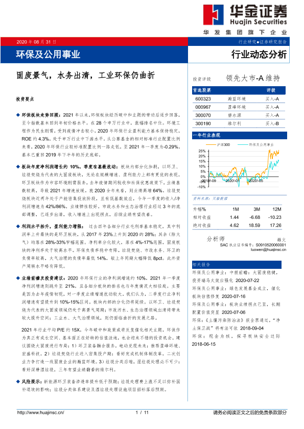 【华金证券】【20200831】环保及公用事业:固废景气,水务出清,工业环保仍曲折-11页