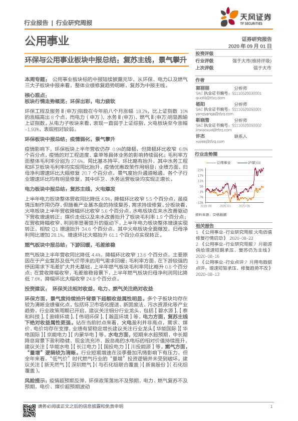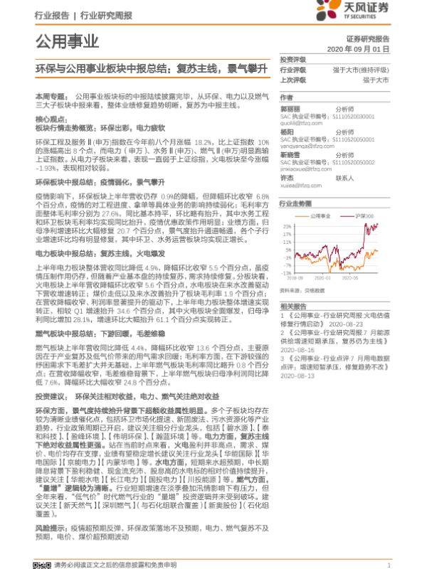 【天风证券】【20200901】环保与公用事业板块中报总结-19页
