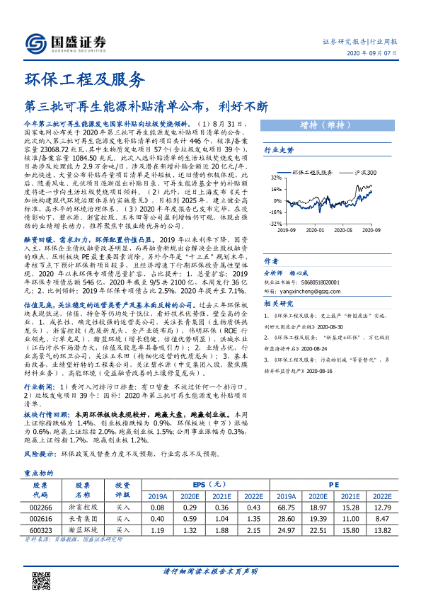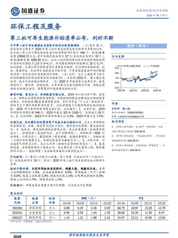 【国盛证券】【20200907】环保工程及服务行业周报:第三批可再生能源补贴清单公布,利好不断-17页