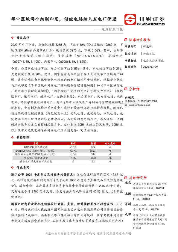 【川财证券】【20200909】电力行业日报:华中区域两个细则印发,储能电站纳入发电厂管理-3页