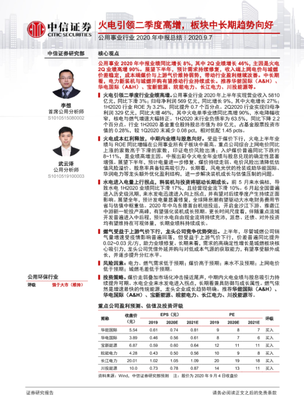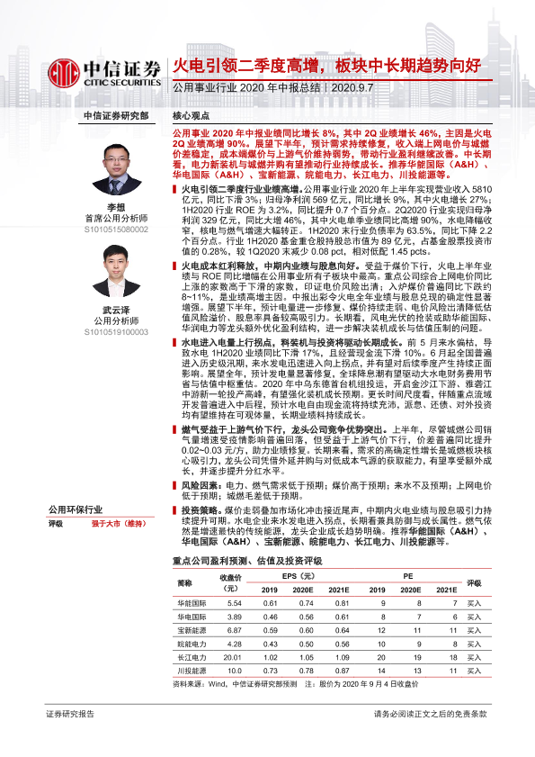 【中信证券】【20200907】公用事业行业2020年中报总结-24页